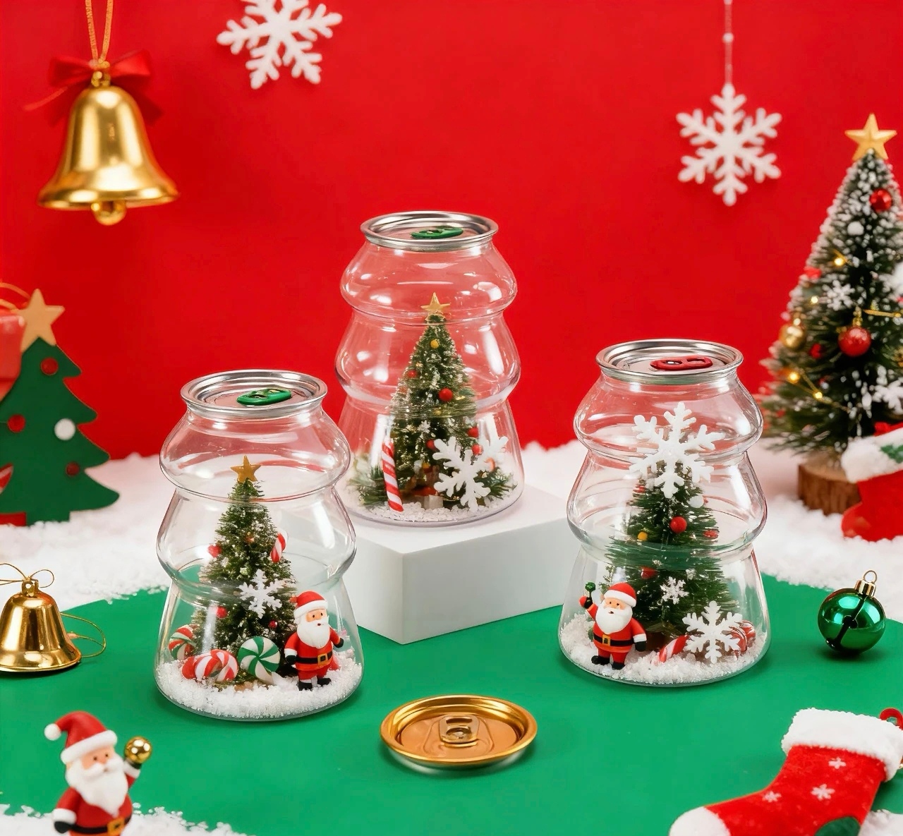 Beyond its use as a beverage container, the can transforms immediately into a decorative object once emptied. Instead of discarding the packaging, consumers can fill it with candies, dried fruits, miniature ornaments, LED lights, or other festive elements. Within seconds, the PET can becomes a Christmas desktop centerpiece or ornament. This dual-use feature aligns closely with current sustainability trends, encouraging reuse and reducing packaging waste.